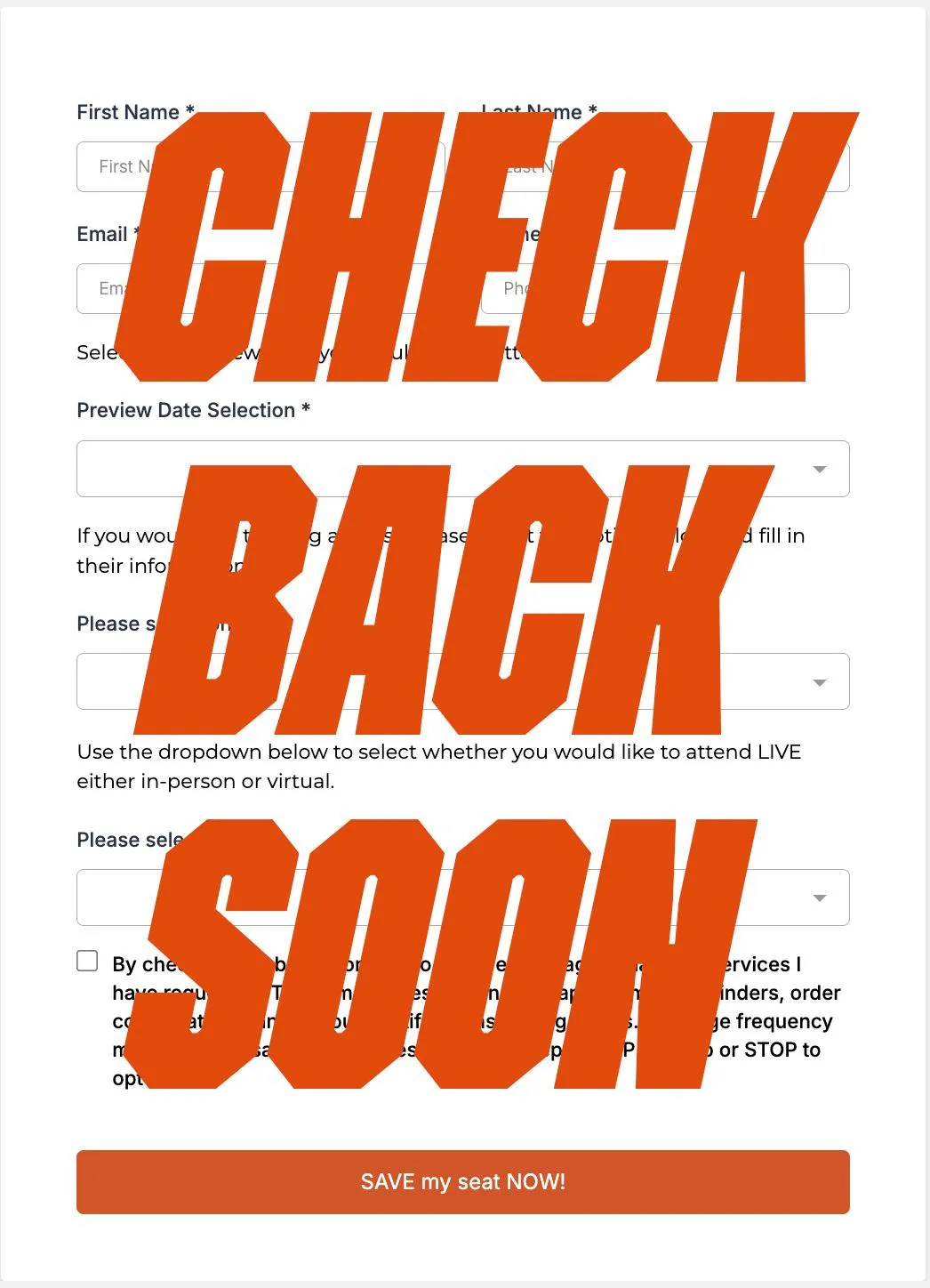 Fill out the form below and tell us if you’re bringing a guest. The moment you do, your seat is locked in, and we’ll send you everything you need to join.